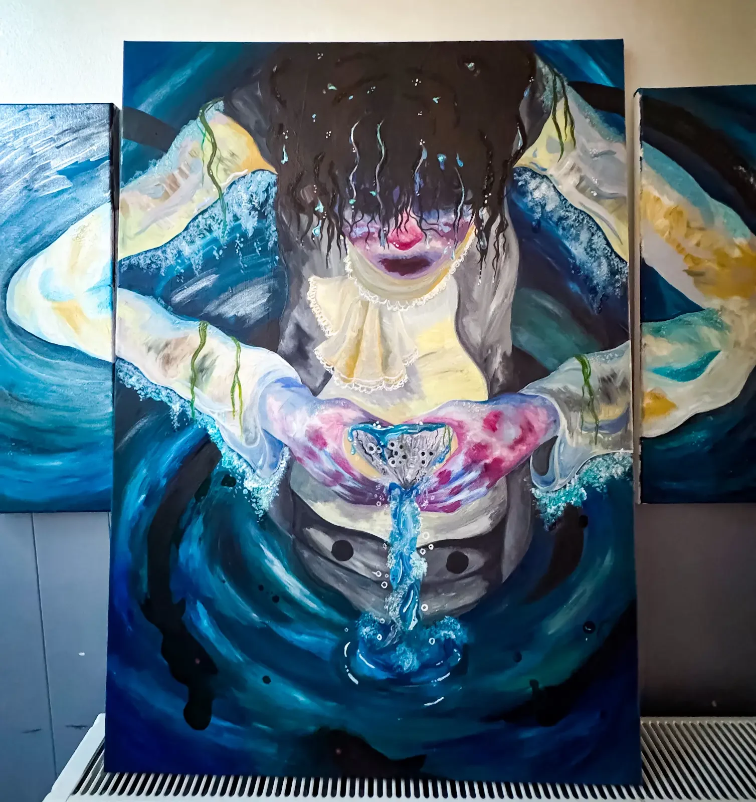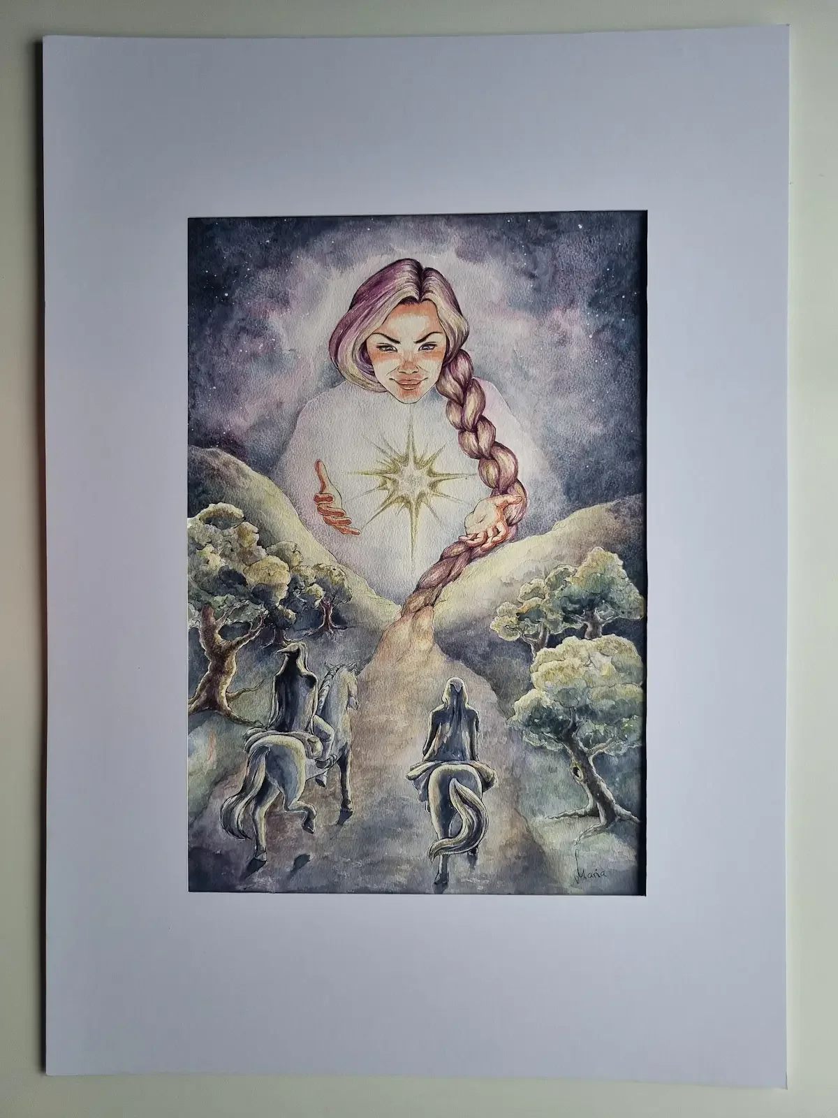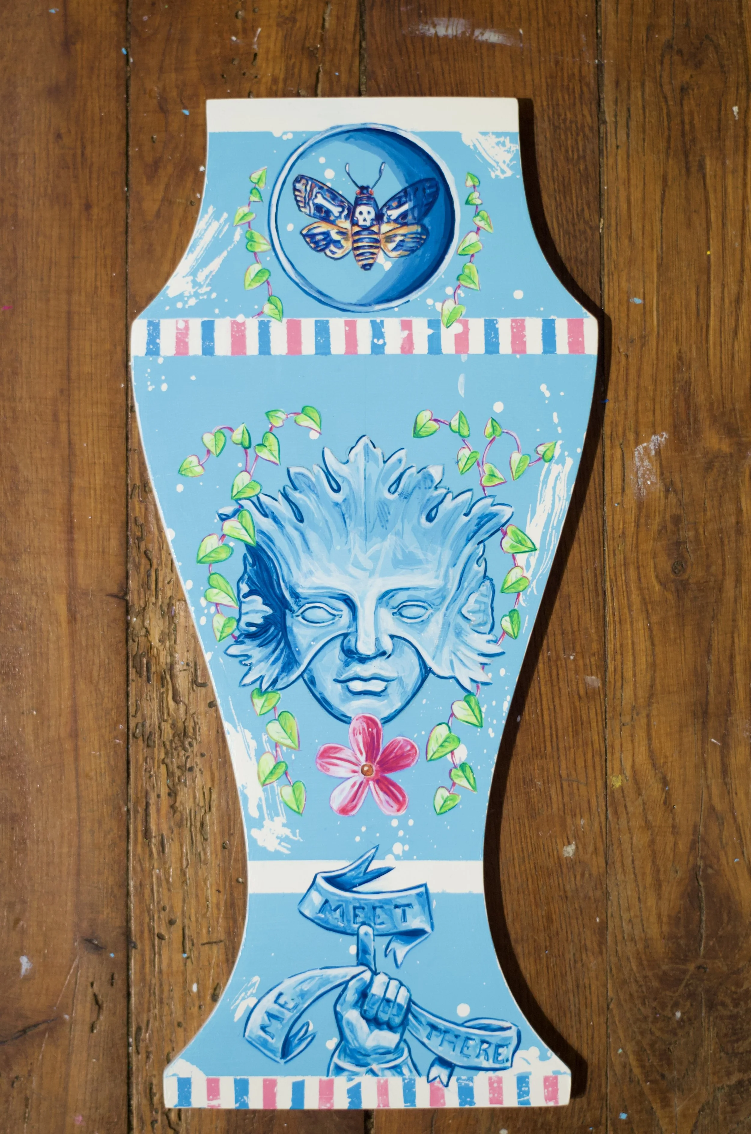 Watercolour paint, alcohol markers, metallic ink, on paper