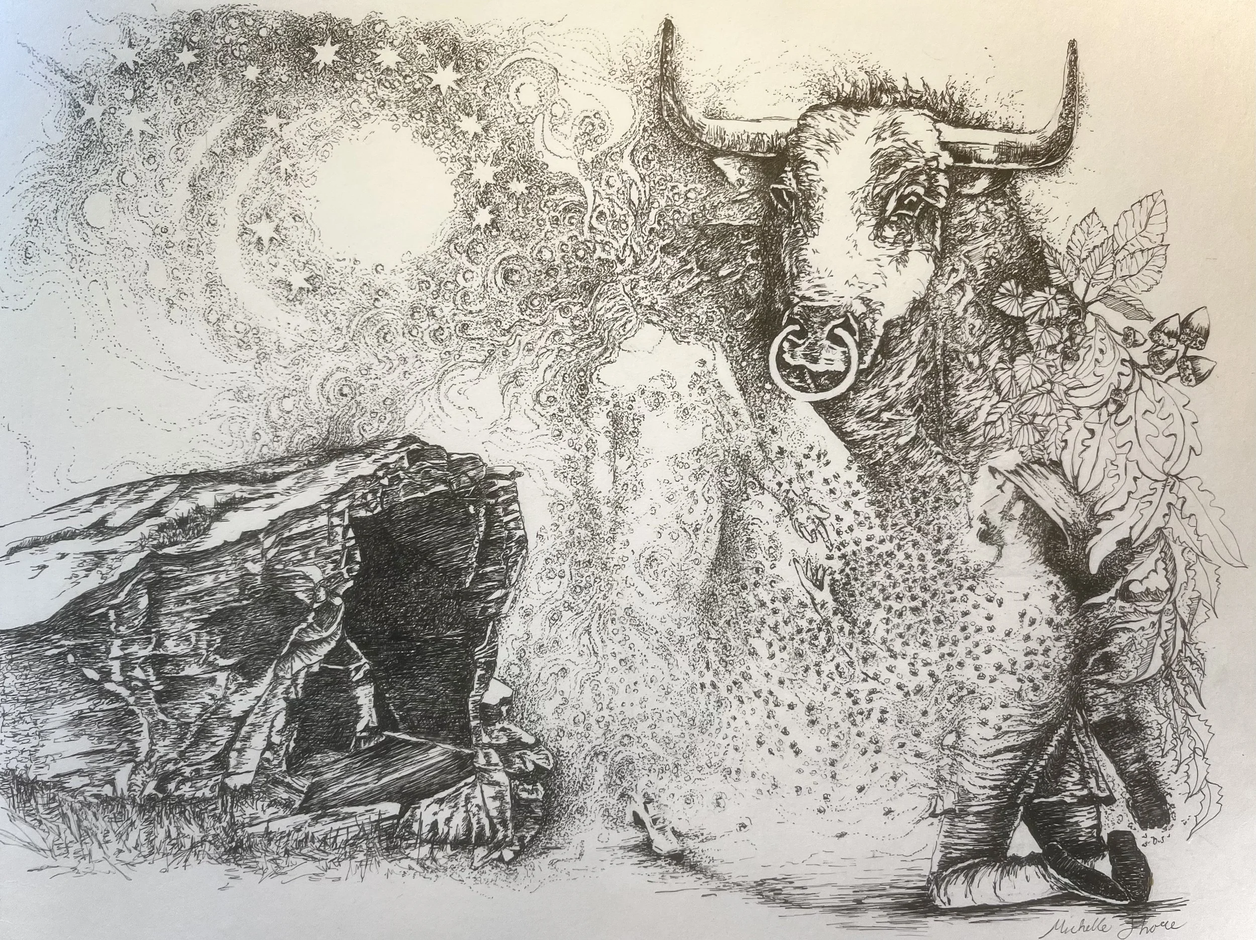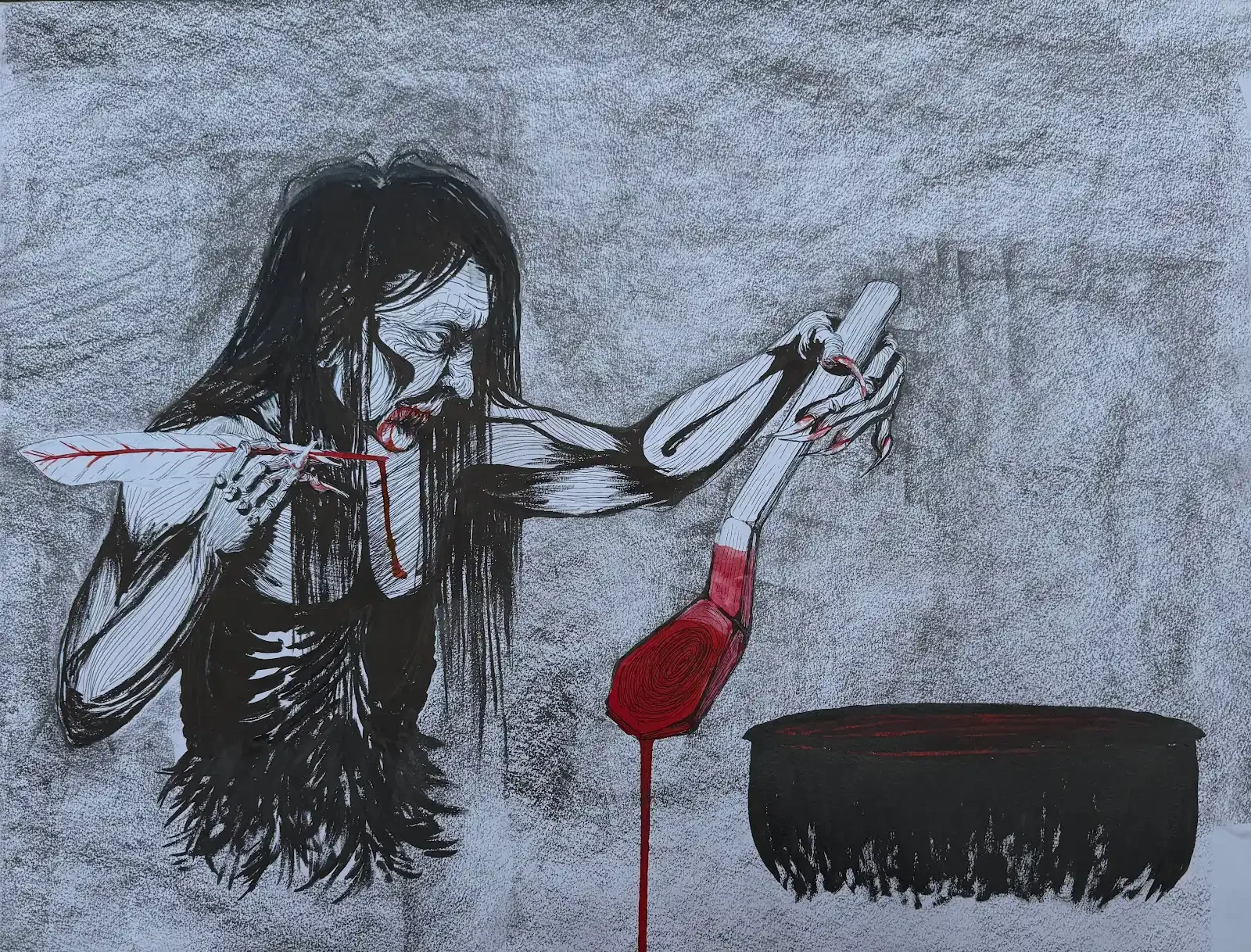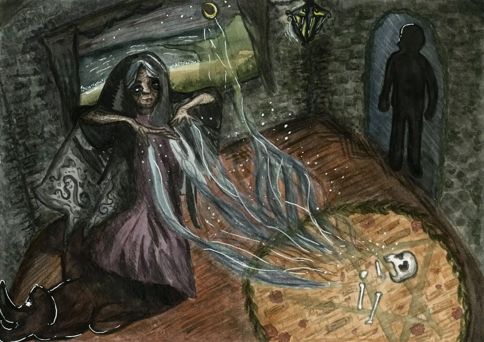 Before we announce the International Dark Folklore Exhibition Curatorial Honors selections, as well as the Dark Cornwall Compendium winners, Gothe Residency of the Arts and Dark Cornwall ask viewers and exhibited artists to keep in mind the following: The artists exhibited with us—those who submitted their stories and art, and who met our guidelines—have accomplished something tremendous. They should be deeply proud of themselves. We are honoured to help preserve the folktales and stories they entrusted to us. The honors and compendium selections below are not a judgment of worth or value. Rather, these selections are simply reflections of what what resonated most deeply and personally with the curators of this exhibition.