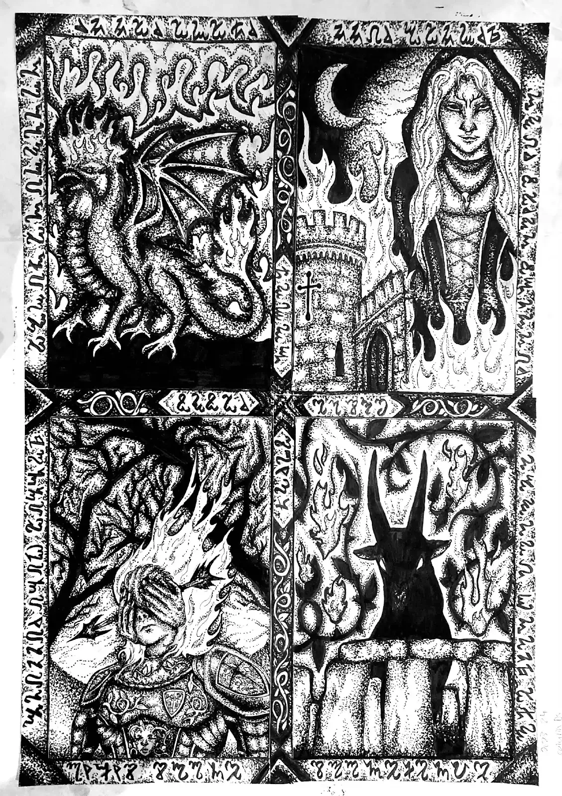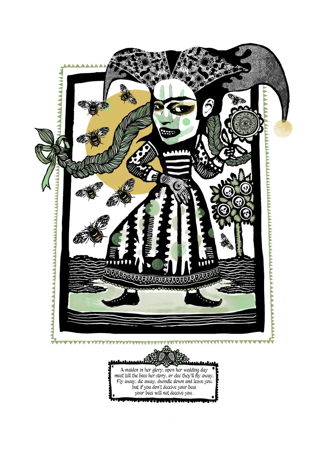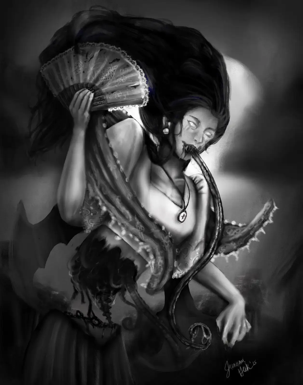 Before we announce the International Dark Folklore Exhibition Curatorial Honors selections, as well as the Dark Cornwall Compendium winners, Gothe Residency of the Arts and Dark Cornwall ask viewers and exhibited artists to keep in mind the following: The artists exhibited with us—those who submitted their stories and art, and who met our guidelines—have accomplished something tremendous. They should be deeply proud of themselves. We are honoured to help preserve the folktales and stories they entrusted to us. The honors and compendium selections below are not a judgment of worth or value. Rather, these selections are simply reflections of what what resonated most deeply and personally with the curators of this exhibition.